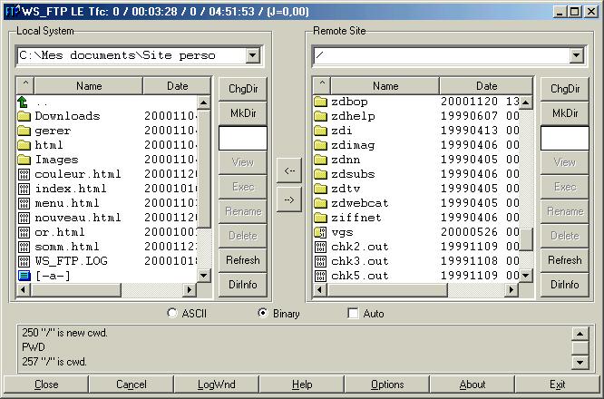 Après cette brève introduction, nous allons passer à quelque chose de plus concret. Pour commencer, je vous invite à télécharger WS_FTP, qui est un logiciel parmis d'autres que je propose en téléchargement sur mon site web. Grâce à lui vous pourrez transférer votre site sur le web.